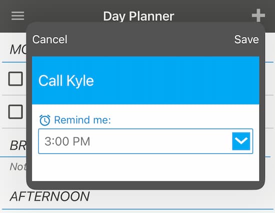 In addition to setting a reminder on a particular Task, you can also set a reminder on a Section of your Day Planner.